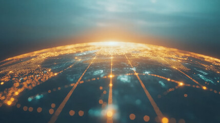 A stunning view of Earth from above, illuminated by a network of glowing lights, suggesting a digital or technological connection across the globe.