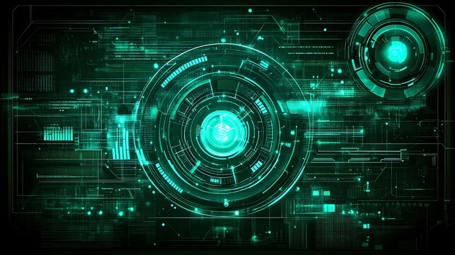 Floating bitcoin orbs with circuit pattern over digital node network in teal