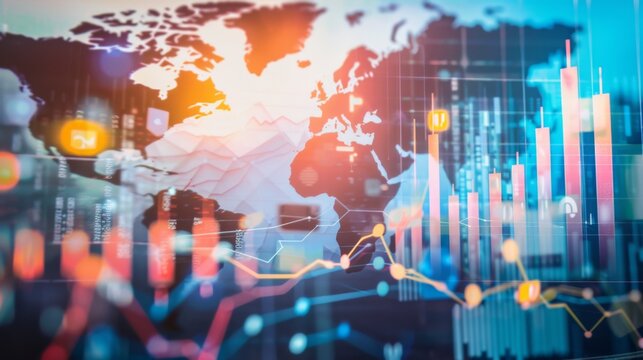 Global economic outlook with digital world map and financial graph
