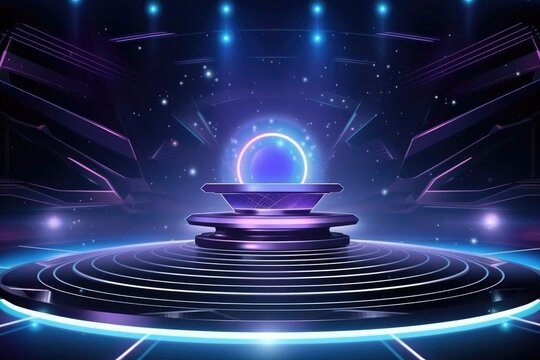 Abstract technology hud interface hologram elements neon lights, circle percent vitality innovation on hi tech future design. Generative AI