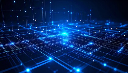 Abstract digital grid with glowing blue dots, representing technology and connectivity