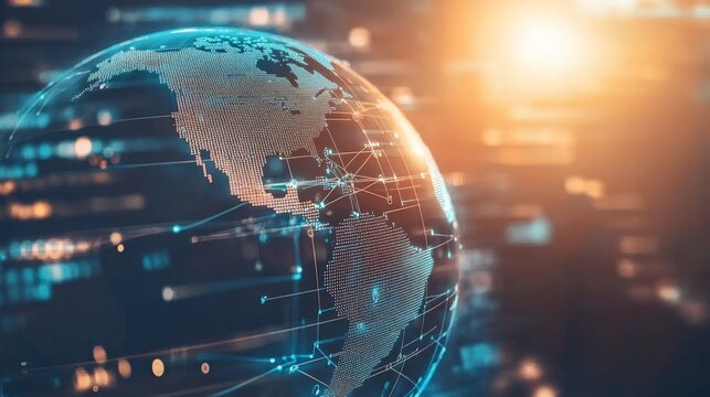 nature conservation concept. Digital globe with green lights on a circuit board background.