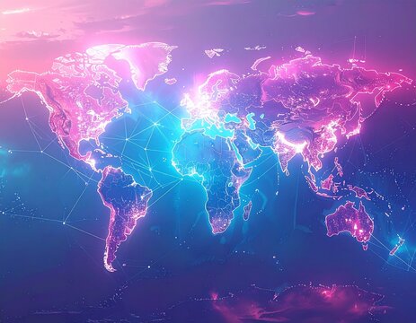 Glowing network world map with gradient background