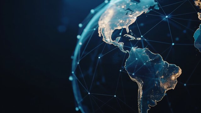 A digital representation of Earth, with interconnected network lines overlaying the continents, symbolizing global connectivity.