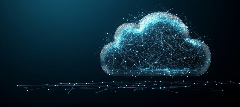 Abstract Blue Glowing Cloud Computing Connectivity. Polygonal Illustration Made Of Lines And Dots