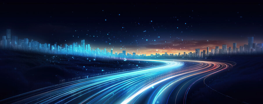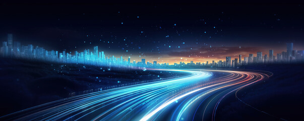 Night planet earth from space with light lines of communication and connection. Business and finance, concept.  Global communications system and the World Wide Web. Technologies and communications.