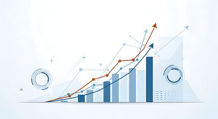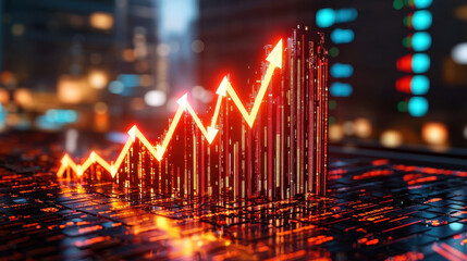 Dynamic business growth chart with upward trending arrows and data visualization elements