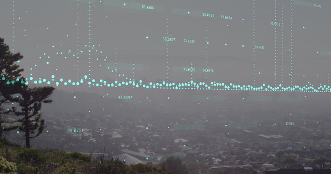 Stock market data overlaid on cityscape reflects fluctuating global economy