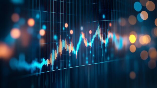Abstract financial graph showing market trends and data analytics on a digital screen with bokeh lights.