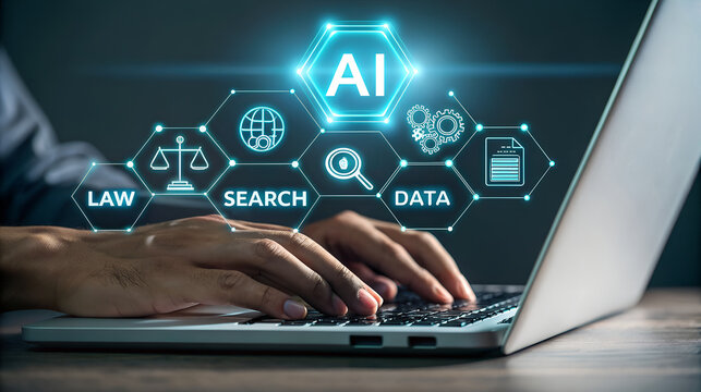 Person using a laptop with futuristic digital interface displaying energy efficiency and environmental data