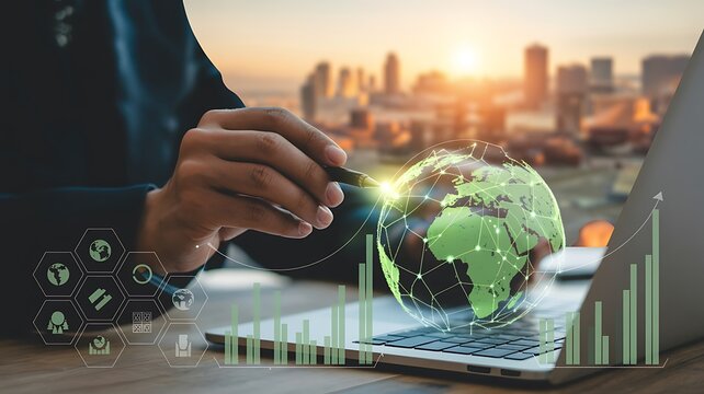 Digital Globe with Trend Charts and AI-Driven Portfolio Forecasting
