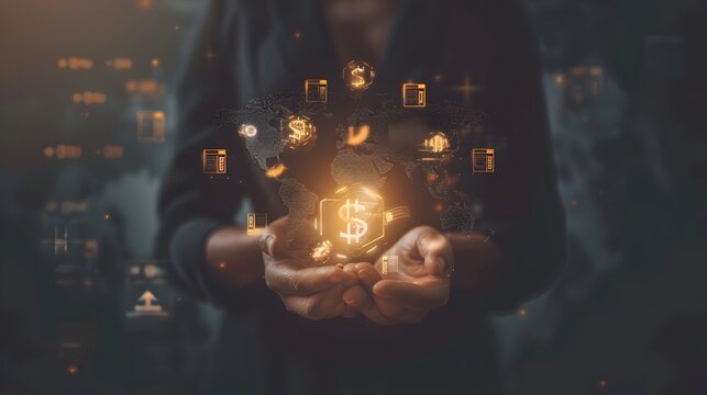Transforming global investment strategies through data analysis and visualization, businessman holds globe while discussing financial growth