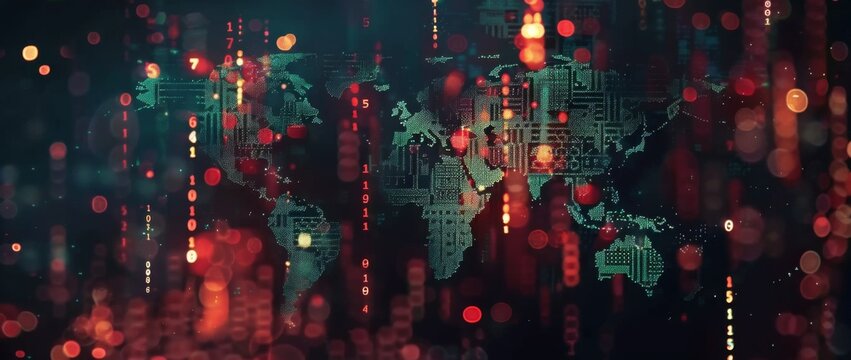 Futuristic blockchain interface with a global network design vibrant data streams digital elements representing advanced technology cryptocurrency decentralized finance innovation secure transactions