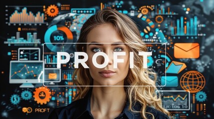 Businesswoman Looking at Profit Data on Digital Screen