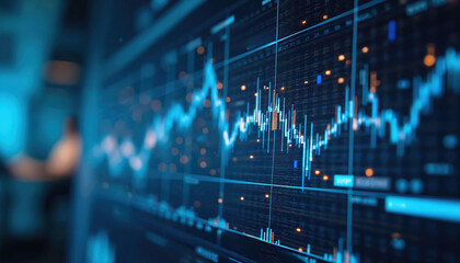 Global financial data visualization with graph and digital interface