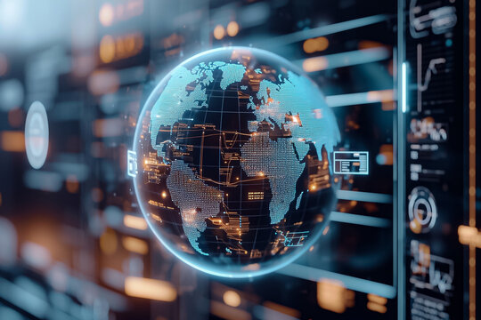 Global financial data in digital interface with earth hologram