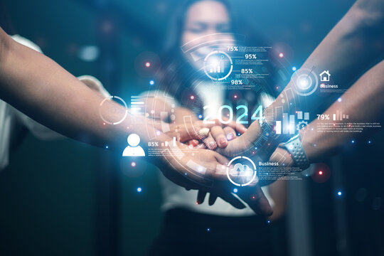 2024 business concept, businessman or engineer Show the trend of driving digital currency to develop online business.