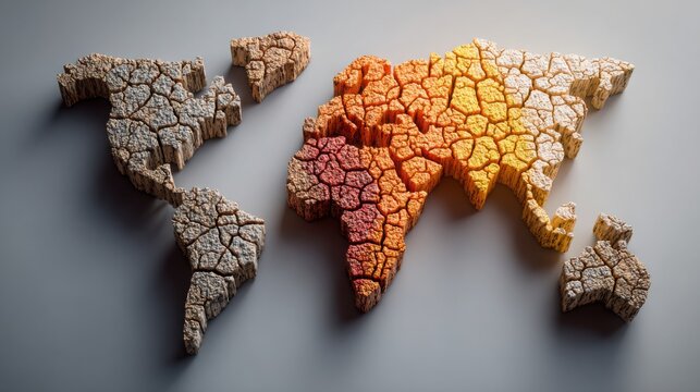 Stethoscope rests on a digital world map highlighting the intersection of healthcare and global health challenges in a vibrant orange and black design