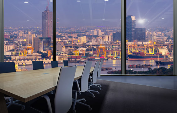 Business Smart Logistics concept,Global business connection technology interface global partner connection of Container Cargo freight ship for Logistic Import Export mangement in meeting room.