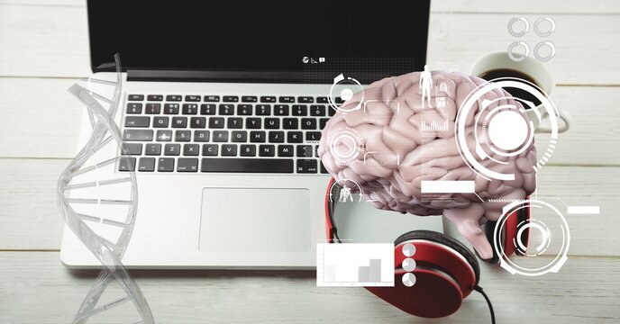 Image of data processing with molecules and brains over diverse surgeons in hospital
