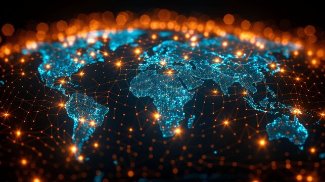 Seamless network of a global logistics transportation system with containers moving across the world.