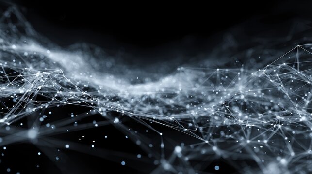 Abstract representation showcasing interconnected dots and lines, resembling a network, overlaid against a dark background with a soft, cloud-like element