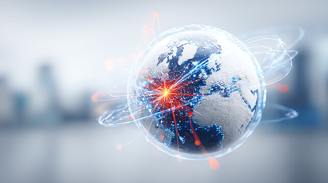 Futuristic Global Network with Digital Connections Over Earth Surface