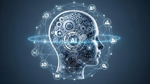 Artificial intelligence brain concept showing machine learning and global network connectivity