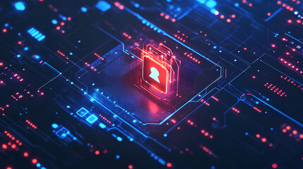 Digital interface with fingerprint scanning and safe symbol for network security, intense purple accents,