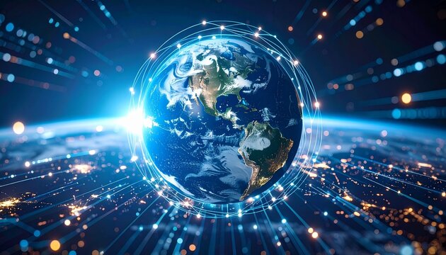 A stunning, futuristic visualization of a globe illuminated with glowing connections, representing global communication and data flow.