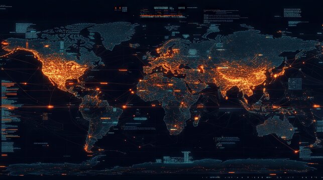 High-tech global network connection interface showing worldwide digital communication, data exchange, and internet connectivity. Global connection, data interaction, and worldwide communication. Thunk