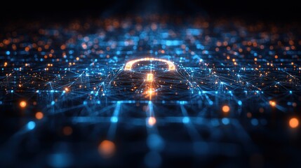 Circuit board with a security shield and a question mark icon in a futuristic, techy illustration