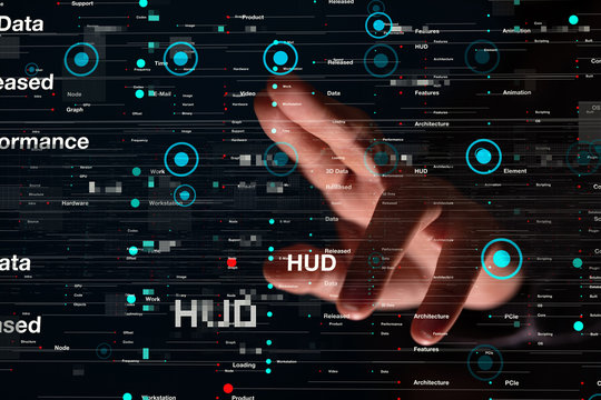 Data Sphere Hologram Projected Near Hand with Binary Numbers and Polygons Against Gray Background