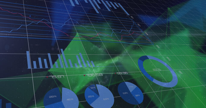 Composition of digital screens with medical data processing over happy senior man using tablet