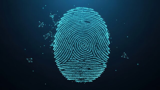 Digital Identity: A striking conceptual image merges a fingerprint with circuit board elements. This image suggests the intersection of personal identity with digital technology.