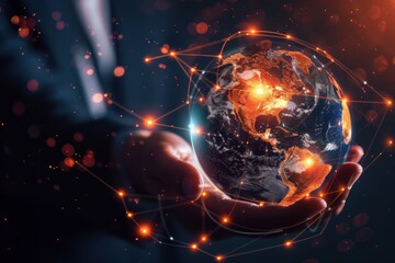Digital global network connections around earth