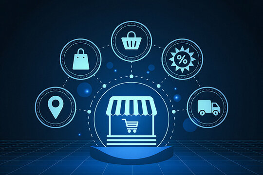 Omnichannel technology in online retail business showcasing multichannel marketing across social media networks, digital payment services, and e-commerce platforms for seamless customer experience and
