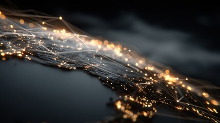 Futuristic Digital Network Visualization with Bright Lights over a Dark Background, Abstract Representation of Global Connectivity and Data Flow