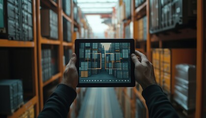 Logistics transportation event warehouse digital integration industrial setting close-up e-commerce efficiency