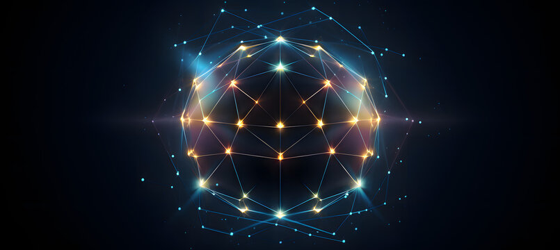 Glowing connections sphere in abstract digital cosmos