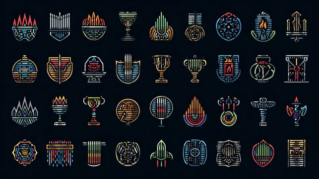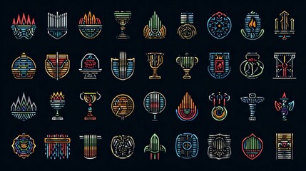 Olympics-themed icons featuring medals, torches, rings, and sports gear in vector format, ideal for global event design and branding