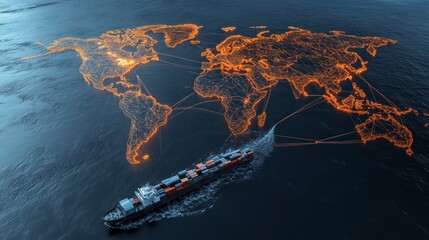 Efficient maritime transportation global shipping routes visual data representation digital environment aerial view innovations in logistics
