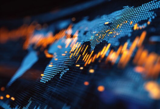 A conceptual image depicting a hand reaching out towards a digital graph showcasing business growth and performance trends in a global context. Impute