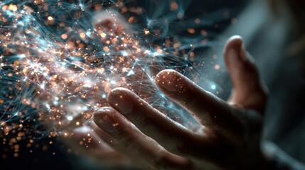 Hands interacting with digital network