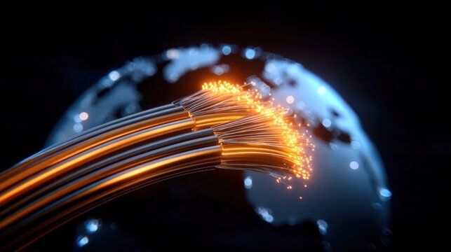 Fiber Optic Cables Transmitting Data Globally, High-Speed Internet Connection, Modern Communication Technology
