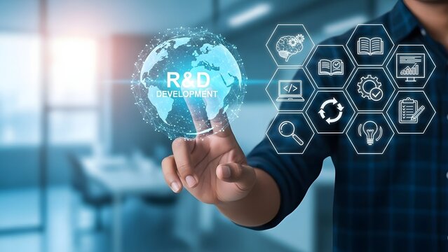 Digital ai hub with connected business icons for analytics finance settings cloud user network computer and globe showcasing intelligent technology integration on dark blue background