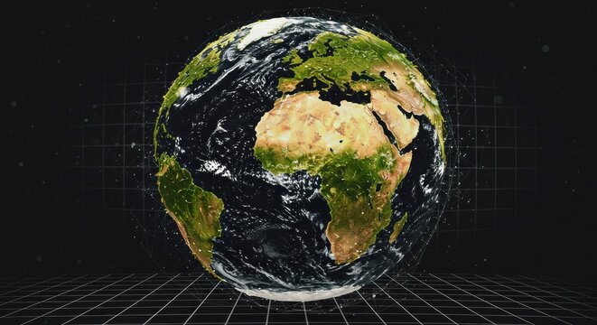 Dynamic 3d digital globe with futuristic data visualization