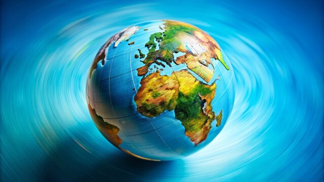 Blue Background with Spinning Globe in Tilt-Shift Photography Style for Global Awareness and Connectivity