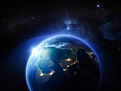 Planet Earth with a spectacular sunset "Elements of this image furnished by NASA"
