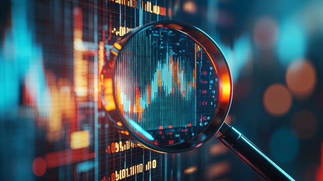 Exploring financial analysis  a magnifying glass over a business chart in a digital environment